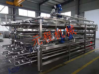 超高溫管式殺菌機是我司融合意大利先進技術,并結合多年實踐經驗不斷進行技術改進升級研制而成。該設備與無菌大袋灌裝機一起組成系統,實現果醬(番茄醬、芒果漿、香蕉漿、桃醬、杏醬、草莓醬、辣椒醬等)、濃縮果汁(菠蘿汁、柑橘汁、蘋果汁、石榴汁等)、帶顆粒的果肉型果汁果醬、糖漿、乳制品等流體產品的無菌灌裝。根據物料粘稠性不同及其加工能力大小可以采用四層套管式結構或者多程列管式結構