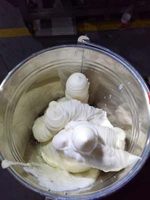 原輔料調配→標準化→乳化→高壓均質→殺菌→急冷→捏合→灌裝→儲藏→熟化。